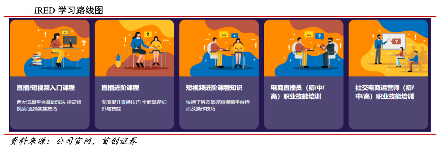 經(jīng)典案例:根據(jù)公司官網(wǎng)、首創(chuàng)證券等綜合資訊表明,2021年1月,天下秀出資設立“天下秀教育”公司,以產(chǎn)業(yè)優(yōu)勢助力高校為在校學生提供相關的職業(yè)教育,將行業(yè)一線需求與學校完整的教學方法相結(jié)合,培養(yǎng)運營、商務,物料設計師、剪輯師等專業(yè)人員,為全行業(yè)提供高素質(zhì)人才。目前與 IRED 達成合作的高校包括上海商學院、四川傳媒學院、上海外國語賢達學院等。