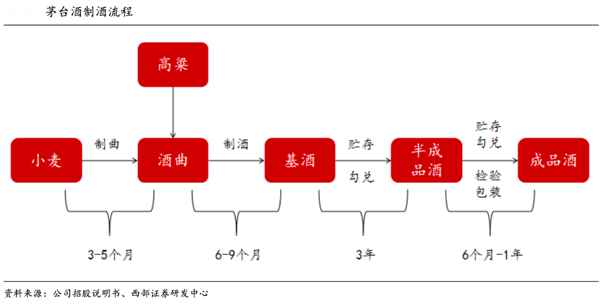 經(jīng)典案例:根據(jù)公司招股說明書、西部證券研發(fā)中心等綜合資訊表明,醬香酒生產(chǎn)過程中嚴(yán)格的原料、苛刻的產(chǎn)區(qū)、復(fù)雜的工藝、長周期的儲存和老酒勾兌方法,使得產(chǎn)品具有較好的協(xié)調(diào)度和柔和度;醬香酒在接酒時溫度在40 度以上,高溫下易揮發(fā)物質(zhì)自然揮發(fā)較多,且經(jīng)過三年存儲,易揮發(fā)物質(zhì)存留較少,對人體刺激也相對較少;再者,醬香酒中留存有較多對人體有益的乳酸和乙酸,更受到人們的認(rèn)可。