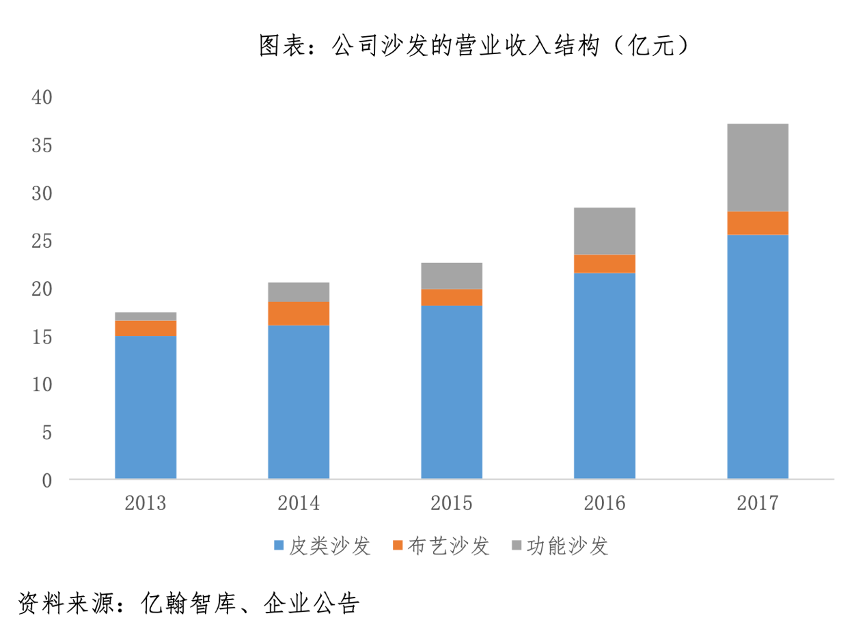 經(jīng)典案例:根據(jù)億翰智庫(kù)、企業(yè)公告等綜合資訊表明,2012年,顧家家居公司通過(guò)和美國(guó)著名功能沙發(fā)品牌 La-Z-Boy 合作切入功能沙發(fā)業(yè)務(wù)。其作為經(jīng)銷商并利用自身渠道使用 La-Z-Boy 品牌在國(guó)內(nèi)銷售功能沙發(fā)產(chǎn)品,推動(dòng)公司功能沙發(fā)的快速發(fā)展。2013- 2017 年,功能沙發(fā)在沙發(fā)總營(yíng)業(yè)收入中所占比例也由 2013 年的 4.82%提升至 2018 年 H1 的 30.10%,占比大幅提升,沙發(fā)的品類日益多樣化。