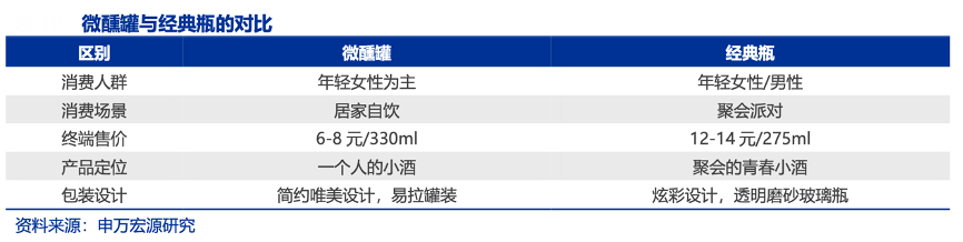 經(jīng)典案例:根據(jù)行業(yè)公開(kāi)資訊、申萬(wàn)宏源研究等綜合資訊表明,RIO經(jīng)典瓶容量小(275ml),單價(jià)高達(dá) 12-14 元,明顯高于啤酒、飲料等大眾品,與目標(biāo)消費(fèi) 群體的消費(fèi)能力不匹配,微醺罐提升容量(330ml)的同時(shí)價(jià)格降至 6-8 元,與新式飲料、中高端啤酒同價(jià),匹配目標(biāo)群體消費(fèi)能力后更容易沉淀復(fù)購(gòu)需求,實(shí)現(xiàn)動(dòng)銷持續(xù)增長(zhǎng)。