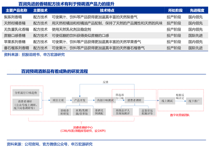 經(jīng)典案例:根據(jù)公司官網(wǎng)、官方微信公眾號(hào)、招股說(shuō)明書(shū)、申萬(wàn)宏源研究等綜合資訊表明,百潤(rùn)甜味香精實(shí)力國(guó)內(nèi)領(lǐng)先,使 RIO 與競(jìng)品相比,能夠具備更持久、更怡人、更貼合產(chǎn)品特征的香氣,給消費(fèi)者留下深刻印象。2021年其將數(shù)字化改革作為重點(diǎn),目標(biāo)是通過(guò)數(shù)字化打通新品研發(fā)、市場(chǎng)調(diào)研、營(yíng)銷活動(dòng)、渠道管理等環(huán)節(jié),建立“人、貨、場(chǎng)”的匹配。數(shù)字化改革落地后 RIO 研發(fā)效率和效果有望進(jìn)一步提升。