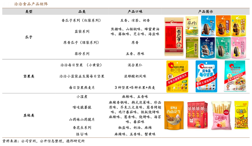 經(jīng)典案例:根據(jù)公司官網(wǎng)、公開信息整理、德邦研究所等綜合資訊表明,洽洽食品在傳統(tǒng)優(yōu)勢(shì)主業(yè)——瓜子品類上,其在經(jīng)典紅袋系列基礎(chǔ)上,開發(fā)出藍(lán)袋及綠袋系列,在產(chǎn)品口味、包裝等 方面實(shí)現(xiàn)不斷的創(chuàng)新升級(jí)。同時(shí)推出高端瓜子品牌“葵珍”,進(jìn)一步豐富瓜子產(chǎn)品矩陣布局。
