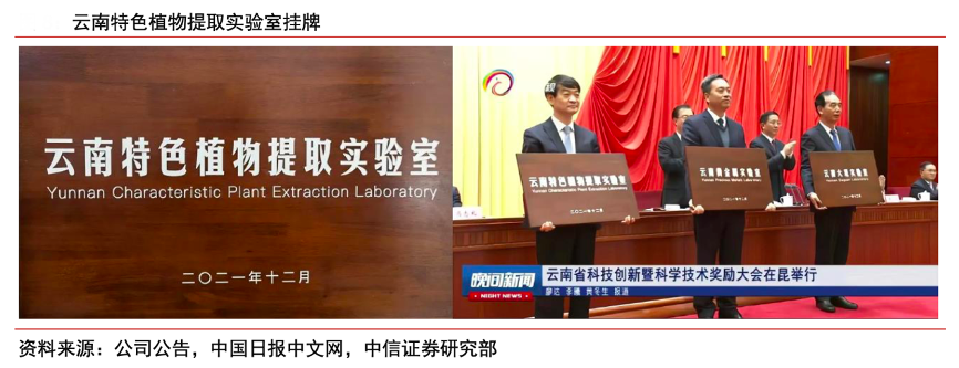 經(jīng)典案例:根據(jù)公司公告、中國日報中文網(wǎng)、中信證券研究部等綜合資訊表明,貝泰妮2021年末云南特色植物提取實驗室正式授牌,其是經(jīng)云南省委、省政府批準(zhǔn)成立的 獨立法人實體新型研發(fā)機(jī)構(gòu),由公司的全資子公司云南云科牽頭承辦建設(shè)工作。實驗室以云南特色植物作為研發(fā)發(fā)動機(jī),支撐未來云南千億特色植物產(chǎn)業(yè)發(fā)展。同時聚焦云南特色植物的功效性化妝品、功效性食品及藥品的研發(fā),有望在未來實現(xiàn)技術(shù)突破,為貝泰妮帶來新的增長曲線。