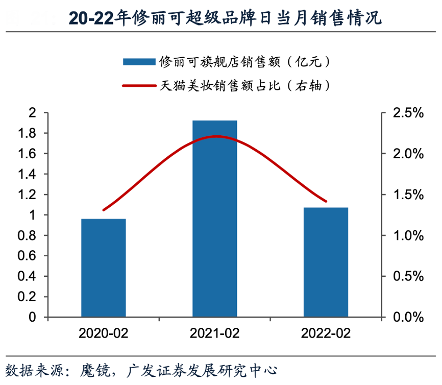 經(jīng)典案例:根據(jù)微博、廣發(fā)證券發(fā)展研究中心等綜合資訊表明,2021年1月至2月期間修麗可聯(lián)合丁香醫(yī)生,在天貓直播間共同打造超級(jí)品牌日特約企劃《專業(yè)請(qǐng)就位》,邀請(qǐng)閆妮、胡先煦、章若楠等明星以及知名美妝博主作為品牌摯友,攜手皮膚學(xué)專家為品牌背書,多圈層聯(lián)動(dòng)深度合作,直播內(nèi)容以科普科學(xué)護(hù)膚干貨、運(yùn)用專業(yè)知識(shí)為消費(fèi)者護(hù)膚痛點(diǎn)提出解決方案、對(duì)修麗可產(chǎn)品的專業(yè)種草等為主,最終實(shí)現(xiàn)了5.8億微博話題閱讀量以及12萬次直播、轉(zhuǎn)播播放量(包含修麗可天貓直播間、丁香醫(yī)生/丁香媽媽抖音、丁香媽媽APP),2月修麗可旗艦店達(dá)到1.92億元的銷售轉(zhuǎn)化,當(dāng)月天貓美妝市占率高達(dá)2.2%。