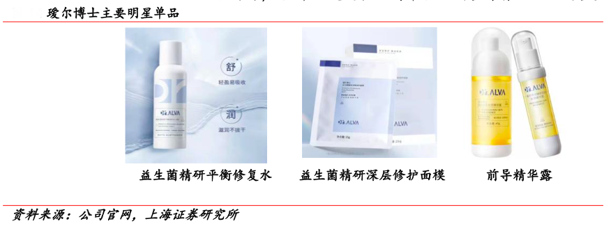 經(jīng)典案例:根據(jù)公司官網(wǎng)、上海證券研究所等綜合資訊表明,璦爾博士定位微生態(tài)護(hù)膚,旗下主要品類為面膜、水乳、潔面乳、營養(yǎng)液、保濕霜、精華液、 修護(hù)水等。產(chǎn)品含有二裂酵母、奧婷敏等多種微生態(tài)成分,有效的修復(fù)肌膚屏障。