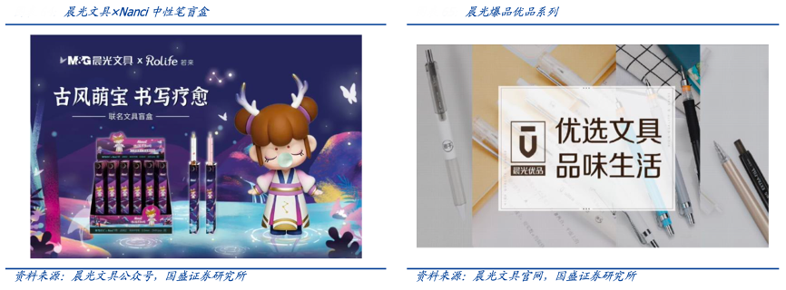 經(jīng)典案例:根據(jù)晨光文具公眾號、晨光文具官網(wǎng)、國盛證券研究所等綜合資訊表明,晨光文具以頭部明星單品、核心爆款產(chǎn)品為主提升單品貢獻,配合成熟的系列化產(chǎn)品及潮流文具(如盲盒、IP、季節(jié)限定等),打造文具中高價格帶一盤貨,擴大精品文創(chuàng)產(chǎn)品在傳統(tǒng)渠道占比。