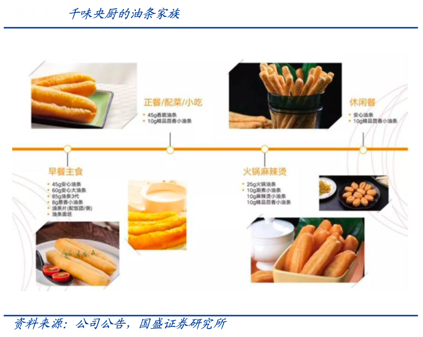 經(jīng)典案例:根據(jù)公司招股說明書、國(guó)盛證券研究所等綜合資訊表明,千味央廚以大單品油條為例,其自2012年起就著手油條細(xì)分市場(chǎng)的探索與創(chuàng)新研發(fā),確定了火鍋、快餐、自助餐、宴席、早餐、外賣六大場(chǎng)景,針對(duì)性推出茴香小油條、 麻辣燙小油條、火鍋涮煮油條、外賣專用油條等多款創(chuàng)新性產(chǎn)品,更針對(duì)不同客戶需求推出了多款創(chuàng)新型油條產(chǎn)品,如太二酸菜魚的黑油條、海底撈的咸蛋黃油條等。通過大單品深度挖掘,公司進(jìn)一步打開單品增長(zhǎng)天花板,為公司帶來持續(xù)穩(wěn)定的業(yè)績(jī)貢獻(xiàn)。