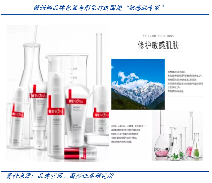 經(jīng)典案例:根據(jù)品牌官網(wǎng)、國盛證券研究所等綜合資訊表明,薇諾娜品牌故事始終圍繞“專注敏感肌膚”概念,從研究成果、產(chǎn)品成分、專利技術(shù)等方面全方 位打造“敏感肌專家”形象。產(chǎn)品包裝方面,自推出起始終采取簡潔的白紅配色,明確傳達品牌定位于皮膚學(xué)級功效護膚的理念。