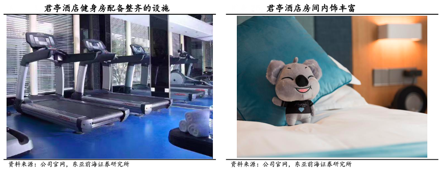 經(jīng)典案例:根據(jù)公司官網(wǎng)、東亞前海證券研究所等綜合資訊表明,君亭酒店在酒店行業(yè)創(chuàng)新性地提出了“BAS”精選服務(wù)模式,“BAS”即Bed(住宿)、Art(文化藝術(shù))和Service(服務(wù)),意思是在提供高品質(zhì)客房這一核心住宿服務(wù)前提下,在客房、公共空間均融入了鮮明的文化藝術(shù)主題元素,并為客人提供專屬設(shè)計的貼心衍生服務(wù)。例如君亭酒店主要選取“金可兒”床墊、“科勒”衛(wèi)浴和 “康乃馨”棉織品等超過現(xiàn)酒店檔次的配套設(shè)施,因此在入住舒適度和消 費體驗方面超過同定位的其他品牌。另外,部分酒店還提供豪華健身房、泳池、會議室等場地。
