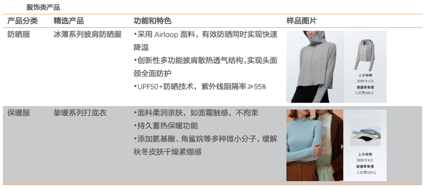 經(jīng)典案例:根據(jù)招股說明書、天風證券研究所等綜合資訊表明,蕉下服裝產(chǎn)品采用原紗防曬技術,可提供長效防曬能力,洗滌 30 次仍能保持UPF50+的防曬效果。防曬服飾彰顯體貼設計,如可拆卸兜帽和多種柔和顏色,從而實現(xiàn)有效防曬、清爽感覺、高度舒適與時尚美觀。