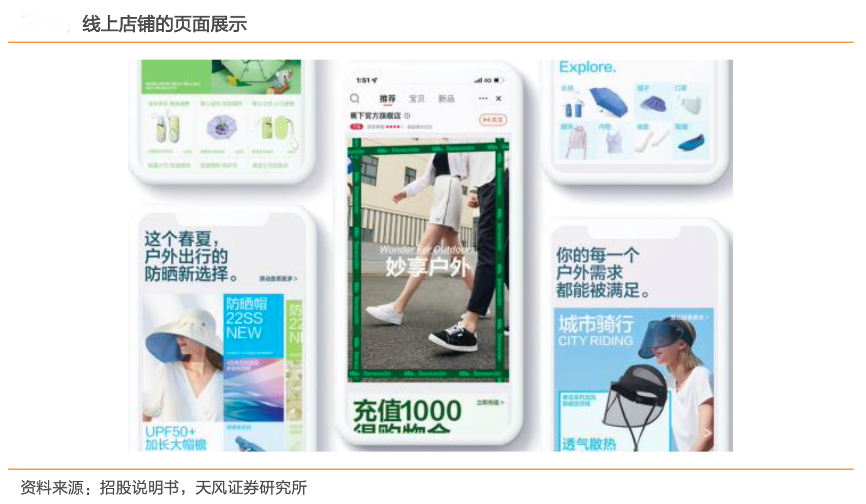 經(jīng)典案例:根據(jù)招股說明書、天風(fēng)證券研究所等綜合資訊表明,蕉下客戶界面設(shè)計(jì)適合線上營(yíng)銷,傳遞“妙享戶外”的品牌理念,刺激購(gòu)買欲望。截至 2022 年 4 月 3 日,其在中國(guó)絕大部分領(lǐng)先成熟電商平臺(tái)運(yùn)營(yíng)線上店鋪。其自 2020 年以來,一直積極把握抖音等快速增長(zhǎng)內(nèi)容電商平臺(tái)的銷售機(jī)遇。