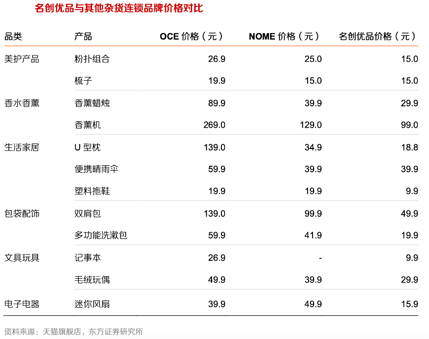 經(jīng)典案例:根據(jù)天貓旗艦店、東方證券研究所等綜合資訊表明,名創(chuàng)優(yōu)品主打極致性價(jià)比的產(chǎn)品,95%以上產(chǎn)品單價(jià)低于 50 元,同一品類商品價(jià)格約為市價(jià)的1/3,對于公司核心客群極具吸引力。其始終堅(jiān)持“三低三高”的經(jīng)營策略:高品質(zhì)、高顏值、高頻率;低成本、低加價(jià)、低價(jià)格。高品質(zhì)的保證來源于嚴(yán)選供應(yīng)商和嚴(yán)格品控措施,國內(nèi)成熟的供應(yīng)鏈體系保障實(shí)現(xiàn)低廉的生產(chǎn)成本,公司內(nèi)部則從設(shè)計(jì)、原材料、樣品到銷售產(chǎn)品全生命周期進(jìn)行品質(zhì)監(jiān)控。