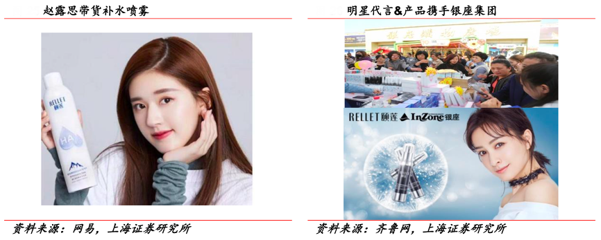 經(jīng)典案例:根據(jù)網(wǎng)易、齊魯網(wǎng)、上海證券研究所等綜合資訊表明,頤蓮攜手銀座集團,邀請明星代言,賦能營銷新生態(tài)。在 KOL 合作方面,覆蓋多個社 交網(wǎng)絡(luò)平臺的達人,其中李佳琪直播帶貨助力補水噴霧銷售,趙露思推薦引發(fā)粉絲搶購。