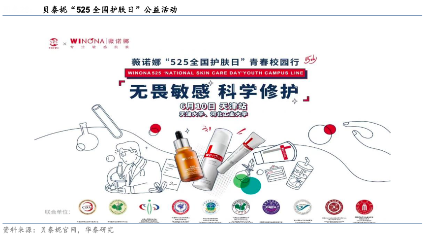 經(jīng)典案例:根據(jù)貝泰妮官網(wǎng)、華泰研究等綜合資訊表明,貝泰妮積累強(qiáng)品牌認(rèn)知度,雙11等促銷季更多自然流量轉(zhuǎn)化。品牌雙 11 和雙 12 購物節(jié)的虹吸效應(yīng)明顯,21 年 Q4 收入達(dá) 19.1 億元,全年占比 47.49%。同時(shí)其也抓住38 節(jié)、618 購物節(jié)等時(shí)機(jī)進(jìn)行促銷活動(dòng)。2021年創(chuàng)造性開展“525 全國護(hù)膚日”公益行動(dòng),在全國 11 大城市開產(chǎn)20 長聯(lián)合超頭部線下渠道義診活動(dòng),引導(dǎo)消費(fèi)者合理預(yù)期化妝品功效,提高品牌知名度。