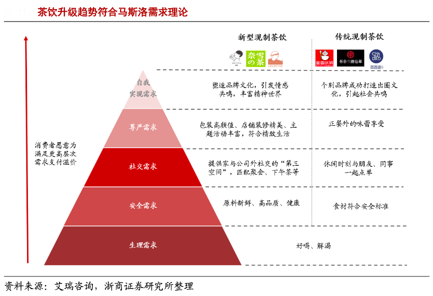 經(jīng)典案例:根據(jù)艾瑞咨詢、浙商證券研究所等綜合資訊表明,消費(fèi)者對消費(fèi)類產(chǎn)品及服務(wù)的多元化、個性化、品質(zhì)化、品牌化以及便捷化等消費(fèi)需求也在不斷提高,且對價格因素的敏感性逐漸下降。在人均消費(fèi)支出整體向上的趨勢下,新式茶飲作為“消費(fèi)升級類”產(chǎn)品受宏觀經(jīng)濟(jì)環(huán)境利好。消費(fèi)者對茶飲的需求逐步從單一的“解渴、好喝”提升到健康化、多元化、個性化、品牌化, 并愿意為實(shí)現(xiàn)更高層次的需求付費(fèi)。
