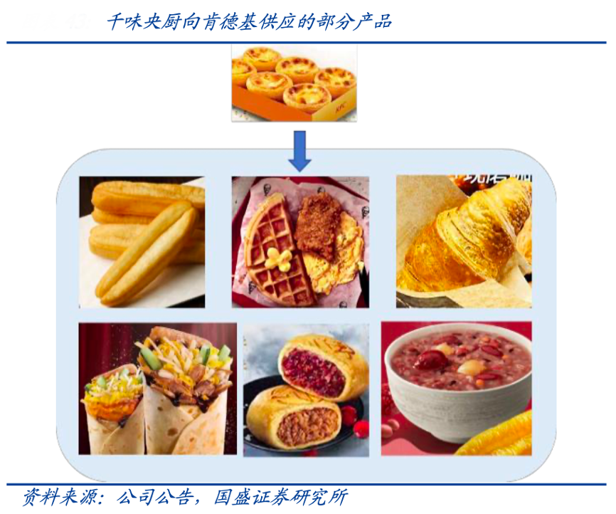 經(jīng)典案例:根據(jù)公司公告、國盛證券研究所等綜合資訊表明,以肯德基為例,千味最早向肯德基供應(yīng)的產(chǎn)品是蛋撻皮,后逐步依照肯德基的需求定制化研發(fā)供應(yīng)新產(chǎn)品,目前已形成安心油條、華夫餅、冷凍面團、烙餅、牛角包、酥 餅、臘八粥、胡辣湯等豐富產(chǎn)品矩陣。其通過“早飯師”切入 C 端早餐供應(yīng)鏈,以油條為明星產(chǎn)品,在早餐場景各品類廣泛鋪開。