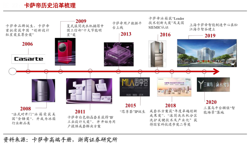 經(jīng)典案例:根據(jù)卡薩帝高端手冊、浙商證券研究所等綜合資訊表明,2019年卡薩帝智能制造中心在上海松江海爾智谷正式建立,致力于打造引領(lǐng)市場的高端生態(tài)制造基 地。2020 年場景品牌“三翼鳥”建立,該平臺集家電、家裝與家居服務(wù)為一體,卡薩帝不再提供簡單的單品功能性服務(wù),更主動為用戶提供全新生活方式一體式服務(wù)。