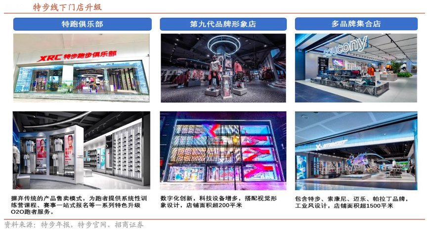 經(jīng)典案例:根據(jù)特步年報(bào)、特步官網(wǎng)、招商證券等綜合資訊表明,2018年后,特步品牌門店數(shù)量保持在 6000 家+,關(guān)閉低效虧損門店,增開二三線城市核心商圈的大店,同時(shí)加開多品牌集合店,零售店平均面積從 2018 年的 105 平米提升至 2021 年的 135 平米。在數(shù)字化加持、運(yùn)營(yíng)提效、產(chǎn)品升級(jí)、 營(yíng)銷加持等多因素影響下,特步品牌線下單店月度流水金額從 2018 年的 13 萬(wàn)元增長(zhǎng)至 2021 年的 18 萬(wàn)元。