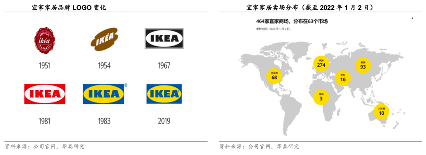 經(jīng)典案例:根據(jù)公司官網(wǎng)、華泰證券等綜合資訊表明,宜家致力于提供品類豐富、高性價比、可持續(xù)發(fā)展的家居用品,品類涵蓋家具、日用品、辦公用品、兒童用品等近萬種SKU,滿足不同消費(fèi)者一站式家居 場景消費(fèi)需求;渠道端門店遍布全球,據(jù)官網(wǎng)數(shù)據(jù),截至 22 年 1 月 2 日宜家在全球 63 個 市場中布局有 464 家宜家商場。據(jù)歐睿統(tǒng)計(jì),2020年宜家品牌在全球家具市場市占率達(dá)5.2%,位列第一。