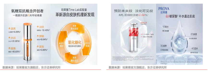 經(jīng)典案例:根據(jù)珀萊雅官方旗艦店、東方證券研究所等綜合資訊表明,珀萊雅公司2021年初對(duì)紅寶石和雙抗精華進(jìn)行產(chǎn)品成分升級(jí),推出 2.0 系列,2022 年女王節(jié)其“早C晚A套餐”銷售件數(shù)超 7.8 萬支,品牌位居天貓國(guó)貨美妝TOP1。2021年其大單品在其天貓平臺(tái)銷售額占比達(dá)60%左右。