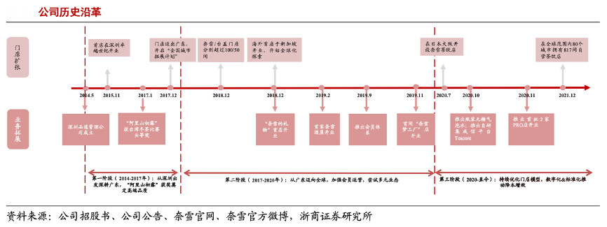 經(jīng)典案例:根據(jù)公司招股書、公司公告、奈雪官網(wǎng)、奈雪官方微博、浙商證券研究所等綜合資訊表明,2017年1月公司研制的茶飲“阿里山初露”獲得當(dāng)年臺灣冬茶比賽頭等獎,奠定了公司茶飲的高端品質(zhì)。2017-2020年:全球擴(kuò)張之路,加強(qiáng)會員運(yùn)營,嘗試多元業(yè)態(tài)。2020年11月,奈雪的茶于深圳推出全新 Pro 門店,打造門店輕量化運(yùn)營。