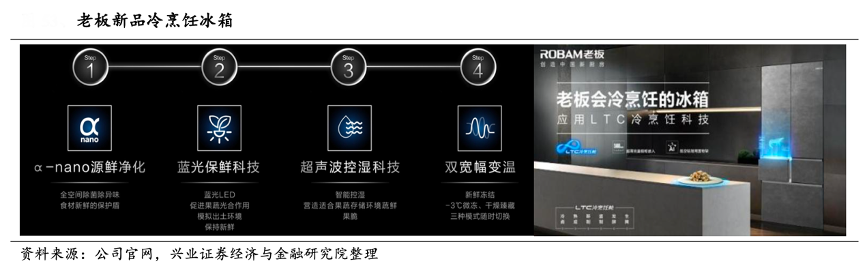 經(jīng)典案例:根據(jù)公司官網(wǎng)、興業(yè)證券經(jīng)濟(jì)與金融研究院等綜合資訊表明,2022中國新廚房科技新品發(fā)布會上,老板發(fā)布首款冰箱產(chǎn)品,試水冰箱領(lǐng)域。該款冰箱采用 LTC 冷烹飪艙科技,可實現(xiàn)冷鹵、熟成、醉制、醬制、發(fā)酵、生腌等冷烹飪功能。