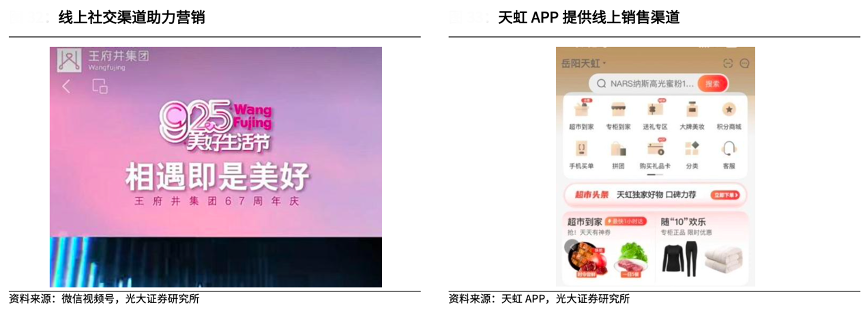 經(jīng)典案例:根據(jù)微信視頻號、天虹APP、光大證券研究所等綜合資訊表明,百貨公司抓住線上渠道機會,利用公眾號、微 博、小程序等社交渠道開展在線營銷,以及利用企業(yè)微信強化私域流量運營,采用線上 APP、直播帶貨等渠道銷售等等。在 1H2022,天虹線上商品銷售及數(shù)字 化服務收入 GMV 達到 29 億元,APP 和小程序月活會員達到 426 萬人。