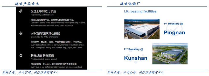 經(jīng)典案例:根據(jù)公司官網(wǎng)、公司公告、安信證券研究中心等綜合資訊表明,瑞幸首個烘焙基地于 2021 年正式投產(chǎn),基地總投資 2.1 億 元、占地面積 4.5 萬m²、咖啡豆年烘焙產(chǎn)能 1.5 萬噸,采用國際先進技術(shù)、配備全套進口先進生豆處理設(shè)備,是國內(nèi)較為領(lǐng)先的全產(chǎn)線自動化智慧型烘焙基地,標志著瑞幸咖啡將逐步打通并實現(xiàn)全產(chǎn)業(yè)鏈的延伸。