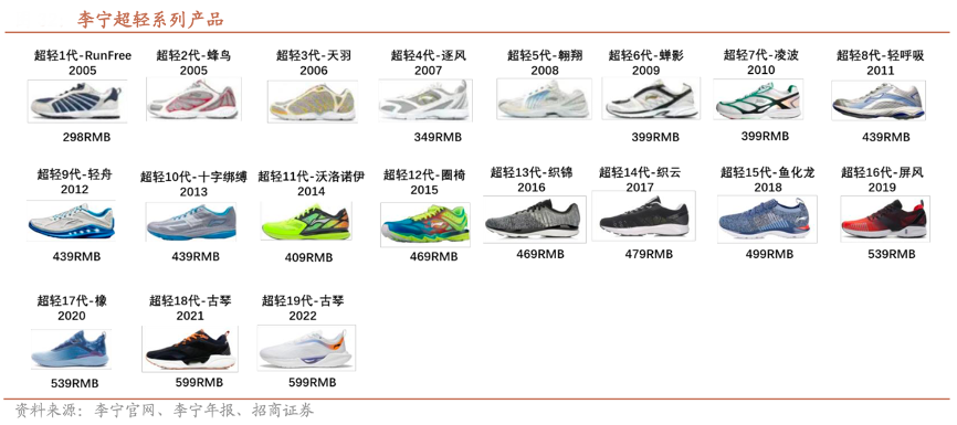 經(jīng)典案例:根據(jù)李寧年報、李寧官網(wǎng)、招商證券等綜合資訊表明,李寧公司自 2005 年開發(fā)超輕系列,超過 15 年的開發(fā)經(jīng)驗使得公司在跑鞋輕量化和性能 調(diào)校上擁有較強的技術(shù)儲備。2021 年超輕 19 跑鞋銷售 90 萬雙,今年預(yù)計可達 300 萬雙。