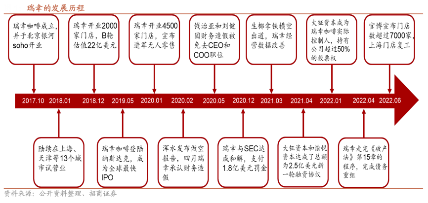 經(jīng)典案例:根據(jù)公開資料、招商證券等綜合資訊表明,瑞幸咖啡成立于 2017 年,定位白領(lǐng)細(xì)分人群和年輕的移動(dòng)互聯(lián)網(wǎng)用戶,主打高性價(jià)比的現(xiàn)磨咖啡產(chǎn)品。瑞幸的咖啡作為流量和抓手,零售是核心, 品牌是動(dòng)力,技術(shù)是支持。公司用短短 17 個(gè)月時(shí)間從品牌創(chuàng)立到納斯達(dá)克上市,刷新全球最快上市記錄。