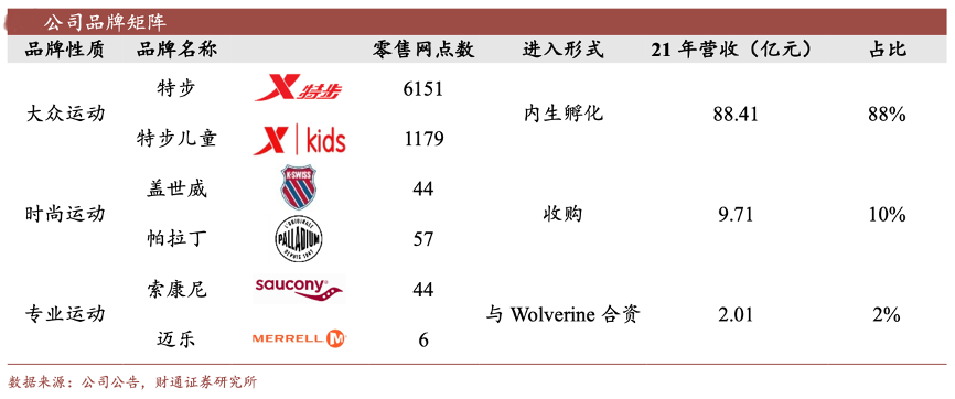 經(jīng)典案例:根據(jù)公司公告、財(cái)通證券研究所等綜合資訊表明,歷經(jīng)品牌初創(chuàng)及快速發(fā)展期(2001-2011)、行業(yè)調(diào)整期 (2012-2014)、戰(zhàn)略變革期(2015-2018),特步公司目前已經(jīng)發(fā)展成為一家多品牌集團(tuán), 形成了涵蓋大眾運(yùn)動(特步主品牌)、專業(yè)運(yùn)動(索康尼、邁樂)、時尚運(yùn)動(帕 拉丁、蓋世威)的多品牌矩陣,覆蓋從大眾到中高端的客戶群體。