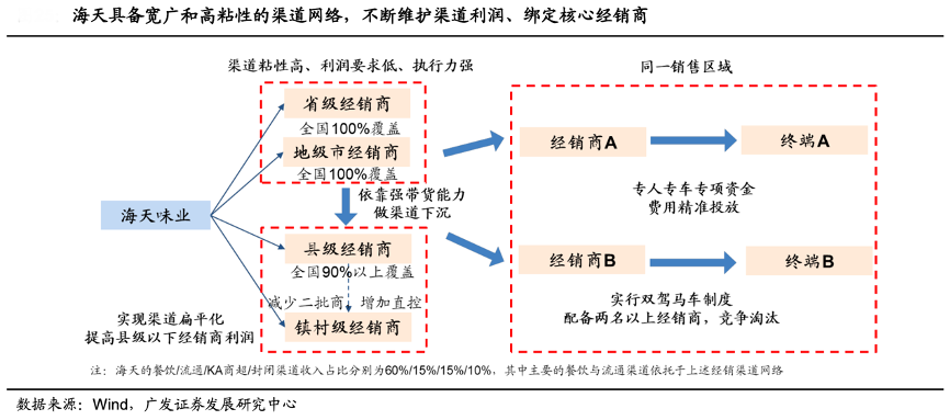 經(jīng)典案例:根據(jù)wind、廣發(fā)證券發(fā)展研究中心等綜合資訊表明,海天2003年開始全面開發(fā)縣級市場,憑借強(qiáng)大的渠道鋪貨能力,目前已實(shí)現(xiàn)全國省級和地級市近100%的覆蓋率、縣級市場90%以上覆蓋率。