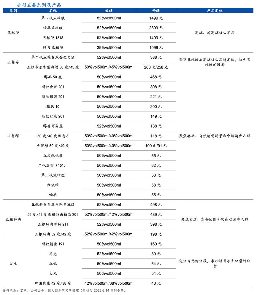 經(jīng)典案例:根據(jù)京東、公司公告、國元證券研究所等綜合資訊表明,五糧液的產(chǎn)品系列及產(chǎn)品定位各有場(chǎng)景,價(jià)值突出。