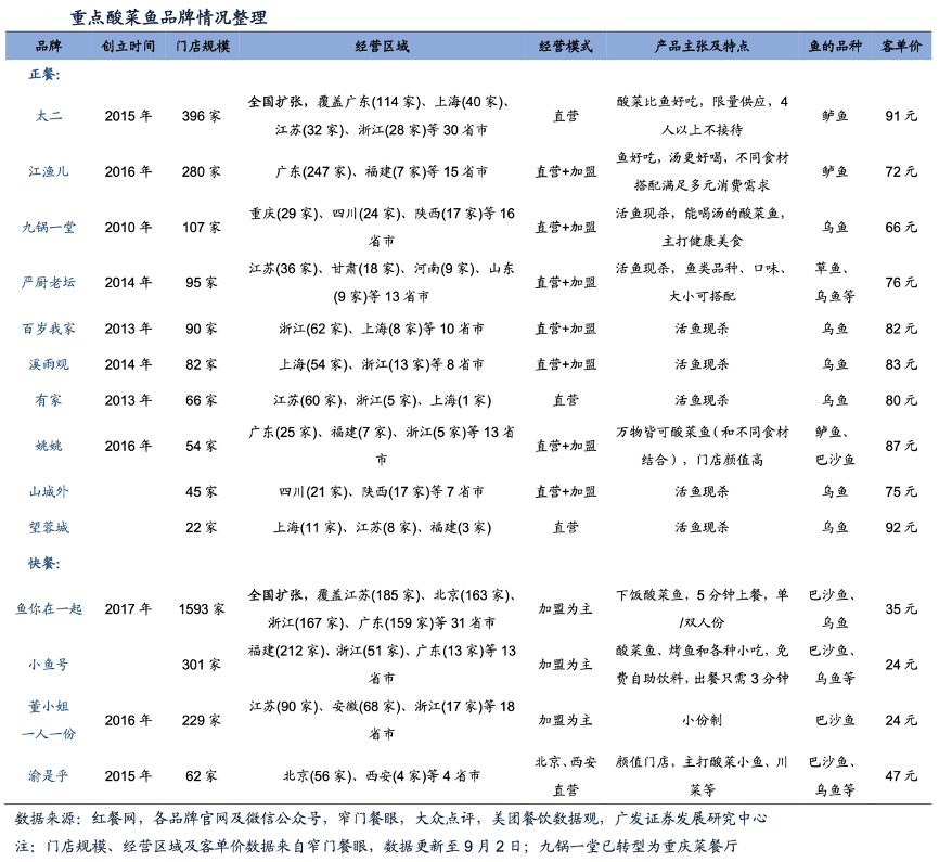 經(jīng)典案例:根據(jù)紅餐網(wǎng)、各品牌官網(wǎng)及微信公眾號(hào)、窄門餐眼、大眾點(diǎn)評(píng)、美團(tuán)餐飲數(shù)據(jù)觀、廣發(fā)證券發(fā)展研究中心等綜合資訊表明,從門店規(guī)模來(lái)看,據(jù)窄門餐眼數(shù)據(jù),截至22年9月2日,太二門店396家,領(lǐng)先第二名 江漁兒100多家(江漁兒部分門店是“社區(qū)小店+外賣”模式)。區(qū)域分布來(lái)看,太二門店已經(jīng)滲透全國(guó)30省市,而其他品牌布局地域 性較強(qiáng),江漁兒近90%門店位于廣東,九鍋一堂主要布局川渝。