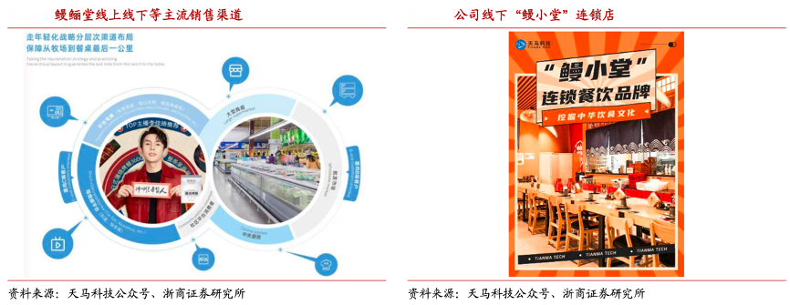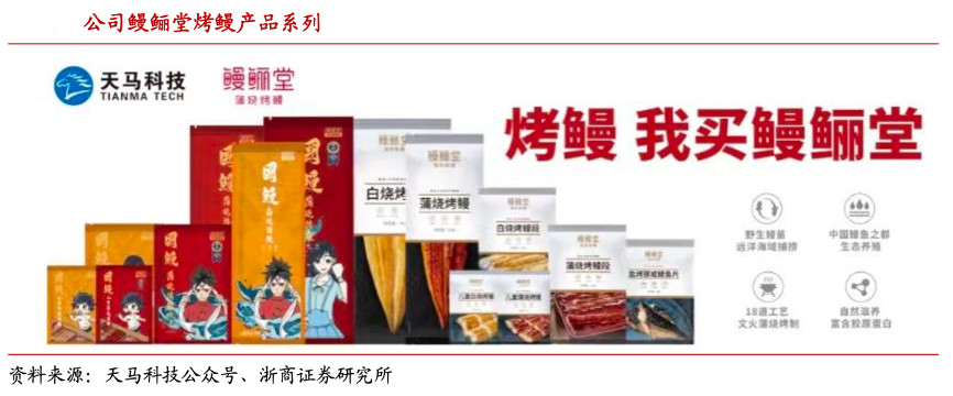 經(jīng)典案例:根據(jù)天馬科技公眾號、浙商證券研究所等綜合資訊表明,天馬科技鰻鱺堂主要從電商、新零售、商超、中央廚房、團餐公司等銷售渠道重點布局國內(nèi)市場,產(chǎn)品包括蒲燒烤鰻、白燒烤鰻等,暢銷 60 多個國家和地區(qū)。