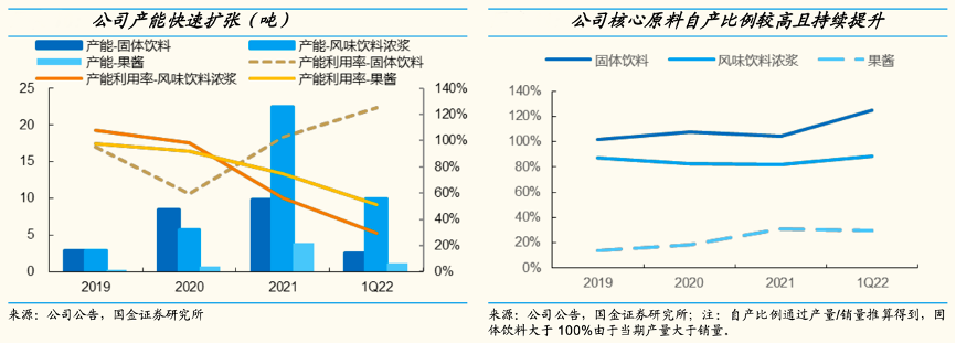 經(jīng)典案例:根據(jù)公司公告、國金證券研究所等綜合資訊表明,蜜雪冰城公司向加盟商主要銷售食材、包材和設(shè)備,其中食材自產(chǎn)比例較高且不斷提升,包材為外采,設(shè)備除子公司喜慕實(shí)業(yè)生產(chǎn)了少量冰淇淋機(jī)、果糖機(jī)等外基本采取外采成品后銷售。截至 2022 年 3 月末,公司已經(jīng)建立起 252 畝智能制造產(chǎn)業(yè)園,13萬平方米全自動(dòng)化生產(chǎn)車間。