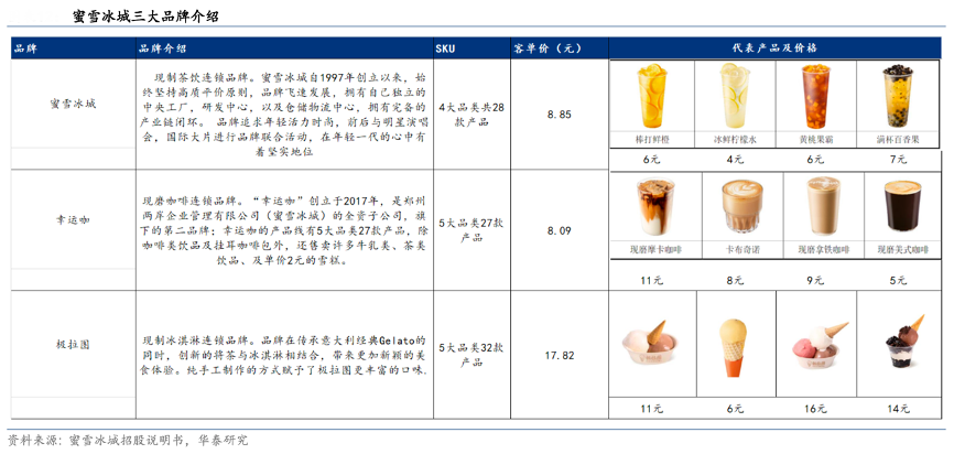 經(jīng)典案例:根據(jù)蜜雪冰城招股說明書、華泰研究等綜合資訊表明,蜜雪冰城現(xiàn)擁有三大現(xiàn)制飲品品牌——現(xiàn)制茶飲“蜜雪冰城”、現(xiàn)磨咖啡“幸運咖”和現(xiàn)制冰淇淋連鎖品牌“極拉圖”。 據(jù)公司官網(wǎng)及窄門餐眼,蜜雪冰城目前有 4 大品類共 28 款產(chǎn)品,客單價為 8.85 元;幸運 咖主打現(xiàn)磨咖啡,共擁有 5 大品類 27 款產(chǎn)品,客單價 8.09 元;極拉圖共 3 大品類,主打手工冰激凌系列,客單價 17.82 元。其中,主力品牌蜜雪冰城產(chǎn)品價格帶集中在 6-8 元區(qū)間,憑借性價比定位在消費者心中形成了較高的品牌認(rèn)知。