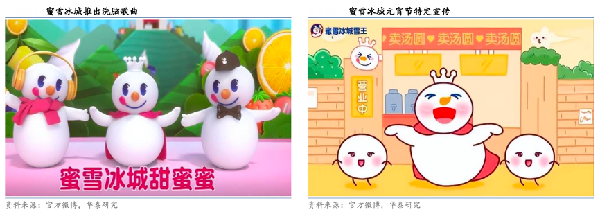 經(jīng)典案例:根據(jù)官方微博、華泰研究等綜合資訊表明,除了雪王形象之外,蜜雪冰城通過推出洗腦網(wǎng)紅歌曲提高品牌知名度,通過鼓勵二創(chuàng)激勵消費者實現(xiàn)自發(fā)宣傳。目前“雪王”相關(guān)視頻播 放量超過 10 億次,“蜜雪冰城”主題曲播放量超過 40 億次,且由于網(wǎng)民自發(fā)對“蜜雪冰城”相關(guān)視頻的創(chuàng)作,僅抖音平臺“蜜雪冰城”相關(guān)話題的播放量已超過 170 億次。