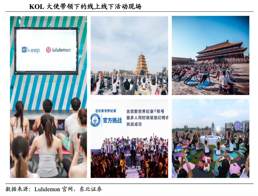 經(jīng)典案例:根據(jù)Lululemon官網(wǎng)、東北證券等綜合資訊表明,Lululemon公司在各大城市公開舉辦瑜伽訓(xùn)練,瑜伽趣味活動(dòng)等,同時(shí)聘請(qǐng)當(dāng)?shù)赜新曂?nbsp;KOL 大使,吸引當(dāng)?shù)氐蔫べ酆谜?,宣傳品牌理念,迅速形成粉絲社群。以進(jìn)軍中國市場(chǎng)初期為例,Lululemon 定期在北京、上海、深圳、西安等地開展線下集體瑜伽活動(dòng),邀請(qǐng)?jiān)陂T店消費(fèi)的顧客參加活動(dòng),請(qǐng)來當(dāng)?shù)氐倪\(yùn)動(dòng)大使以及瑜伽業(yè)內(nèi)有名望的專業(yè)人士,活動(dòng)現(xiàn)場(chǎng)異?;鸨?。
