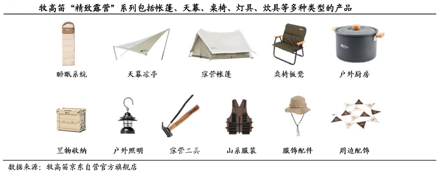 經(jīng)典案例:根據(jù)牧高笛京東自營官方旗艦店、國泰君安證券研究等綜合資訊表明,牧高笛公司秉持“產(chǎn) 品+場景”的設(shè)計(jì)理念,逐步打造“精致露營”、“精致野餐”、“精致徒步”產(chǎn)品線,產(chǎn)品在具備專業(yè)性能的基礎(chǔ)上,兼具實(shí)用性和體驗(yàn)感,可滿足露營消費(fèi)者戶外出行的多樣化需求。