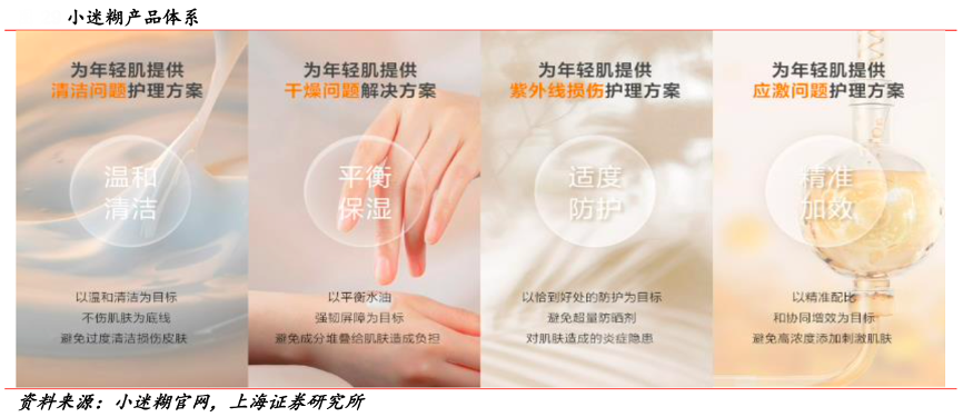 經典案例:根據(jù)小迷糊官網、上海證券研究所等綜合資訊表明,2022年 8 月,小迷糊對品牌進行了全新升級。基于近千名用戶一對一的調研訪談,小迷糊鎖定年輕肌科學護理賽道,倡導科學護膚不過度,致力于為年輕肌提供科學有效的肌膚護理,率先開啟年輕肌科學護膚時代。