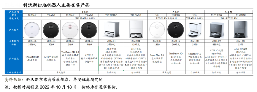 經(jīng)典案例:根據(jù)科沃斯京東自營旗艦店、華安證券研究所等綜合資訊表明,科沃斯公司掃地機器人主要在售產(chǎn)品包括一點的 K 系列和科沃斯的 T 系列、N 系列和 X 系 列,價格段從 799-5399 元不等,技術(shù)方面,公司產(chǎn)品力持續(xù)領(lǐng)先,是市 場上為數(shù)不多地同時擁有 LDS SLAM 和 VSLAM 全局規(guī)劃產(chǎn)品的領(lǐng)先企業(yè),公司產(chǎn)品的 導航方式涵蓋了市面上主流前沿技術(shù),包括 D-ToF 激光導航、AIVI 視覺導航和 3D 結(jié)構(gòu) 光導航,可實現(xiàn)掃地、拖地、自清潔、自集塵等多種功能,持續(xù)為用戶創(chuàng)造價值增量。