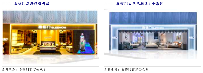 經(jīng)典案例:根據(jù)喜臨門官方公眾號、開福證券研究所等綜合資訊表明,喜臨門在對終端門店店態(tài)做精致化提升,逐步擴(kuò)大大店(600平以上,至少包含 3-4 個系列)店態(tài)占比。2022 、年喜臨門規(guī)劃新開 800-1000 家門店,凈開800 家左右,規(guī)劃大店占比在 20%-30%。