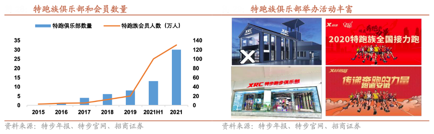 經(jīng)典案例:根據(jù)特步年報、特步官網(wǎng)、招商證券等綜合資訊表明,特步2012 年建立特跑族,2015 年在全各地跑者聚居地設(shè)立特跑族俱樂部,基于跑者多樣 化的需求,提供訓(xùn)練營課程、步態(tài)分析、足型測試、賽事一站式報名等一攬子服務(wù),2021 年特跑族俱樂部數(shù)量達(dá)到 30 家,會員人數(shù)從 2015 年 2.5 萬人增長至 130 萬人。