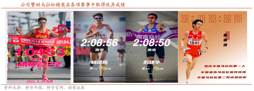經(jīng)典案例:根據(jù)特步年報、特步官網(wǎng)、招商證券等綜合資訊表明,特步常年贊助馬拉松冠軍運動員:包括柏林馬拉松冠軍董國建、南昌馬拉松冠軍彭建華等,截止 2021 年底,已有 8 位特步贊助的運動員穿著特步跑鞋在 26 項馬拉松賽事中獲得冠軍,特步品牌在中國跑者圈的知名度和認(rèn)可度快速提升。