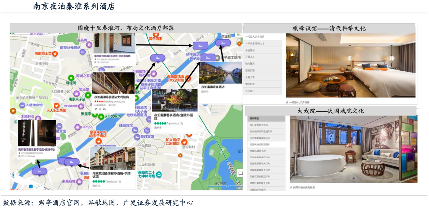 經(jīng)典案例:根據(jù)君亭酒店官網(wǎng)、谷歌地圖、廣發(fā)證券發(fā)展研究中心等綜合資訊表明,棋峰試館為例,建筑原身為兩百多年前清嘉慶年間專貢科舉考生投宿所建,君亭公司借鑒了這段歷史,開創(chuàng)性地將科舉文化融入酒店住宿之中??头?nbsp;以“一鳴驚人,步步高升”、“金榜題名”、“奪錦之才”等科舉考試下的祝福詞 為名,客房風(fēng)格以古樸典雅為主,將書法、屏風(fēng)等科舉元素融合進(jìn)現(xiàn)代化客房設(shè)施中。放眼國內(nèi)高端城市酒店,君亭以東方文化為核心,塑造出強(qiáng)大的品牌壁壘。