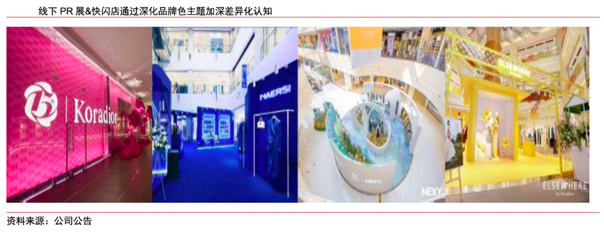 經(jīng)典案例:根據(jù)公司公告、中信證券研究部等綜合資訊表明,以三大核心品牌為例,贏家時尚公司賦予各品牌代表色,例如珂萊蒂爾玫紅、娜爾思 25 度藍、奈蔻綠、珂思黃,并在產(chǎn) 品設(shè)計上融入玫瑰、百合、蘭花等品牌花賦予品牌差異化內(nèi)涵,結(jié)合線下場景深度植入,對各大品牌做清晰區(qū)分,打造差異化認(rèn)知。