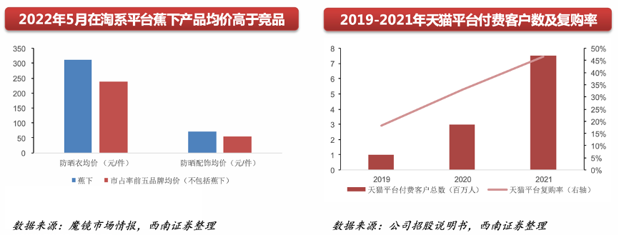 經(jīng)典案例:根據(jù)魔鏡市場情報(bào)、公司招股說明書、西南證券等綜合資訊表明,蕉下公司為國內(nèi)首家專注防曬的中高端品牌,通過差異化競爭占據(jù)消費(fèi)者心智,產(chǎn)品價(jià)格方面,公司產(chǎn)品定價(jià)不僅高于市場均價(jià),相較于頭部競爭者均價(jià)亦較高。