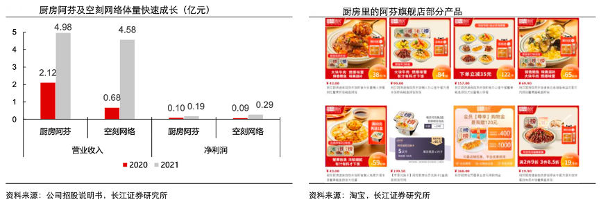 經(jīng)典案例:根據(jù)公司招股說明書、淘寶、長江證券研究所等綜合資訊表明,2021 年 3 月 16 日寶立食品公司以自有資金收購廚房阿芬75%股權(quán),估值 5600萬元。廚房阿芬的主營業(yè)務(wù)為輕烹解決方案類產(chǎn)品的銷售,主要產(chǎn)品包括空刻意面和撈飯等,廚房阿芬及其子公司空刻網(wǎng)絡(luò)具有較強(qiáng)的面向個(gè)體消費(fèi)者的產(chǎn)品創(chuàng)新和推廣能力。