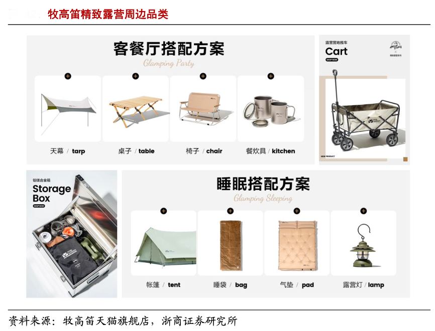 經(jīng)典案例:根據(jù)牧高笛天貓旗艦店、浙商證券研究所等綜合資訊表明,牧高笛公司于 2020 年推出“紀(jì)元”系列,定位高端精致露營市場,相比于傳統(tǒng)戶外帳篷,紀(jì)元系列帳篷內(nèi)部空間大幅擴(kuò)大,高度達(dá)到 1.8-2.9 米,可以展開前廳,使用者可以在帳篷內(nèi)烹飪,契合精致露營場景的獨(dú)特需求。